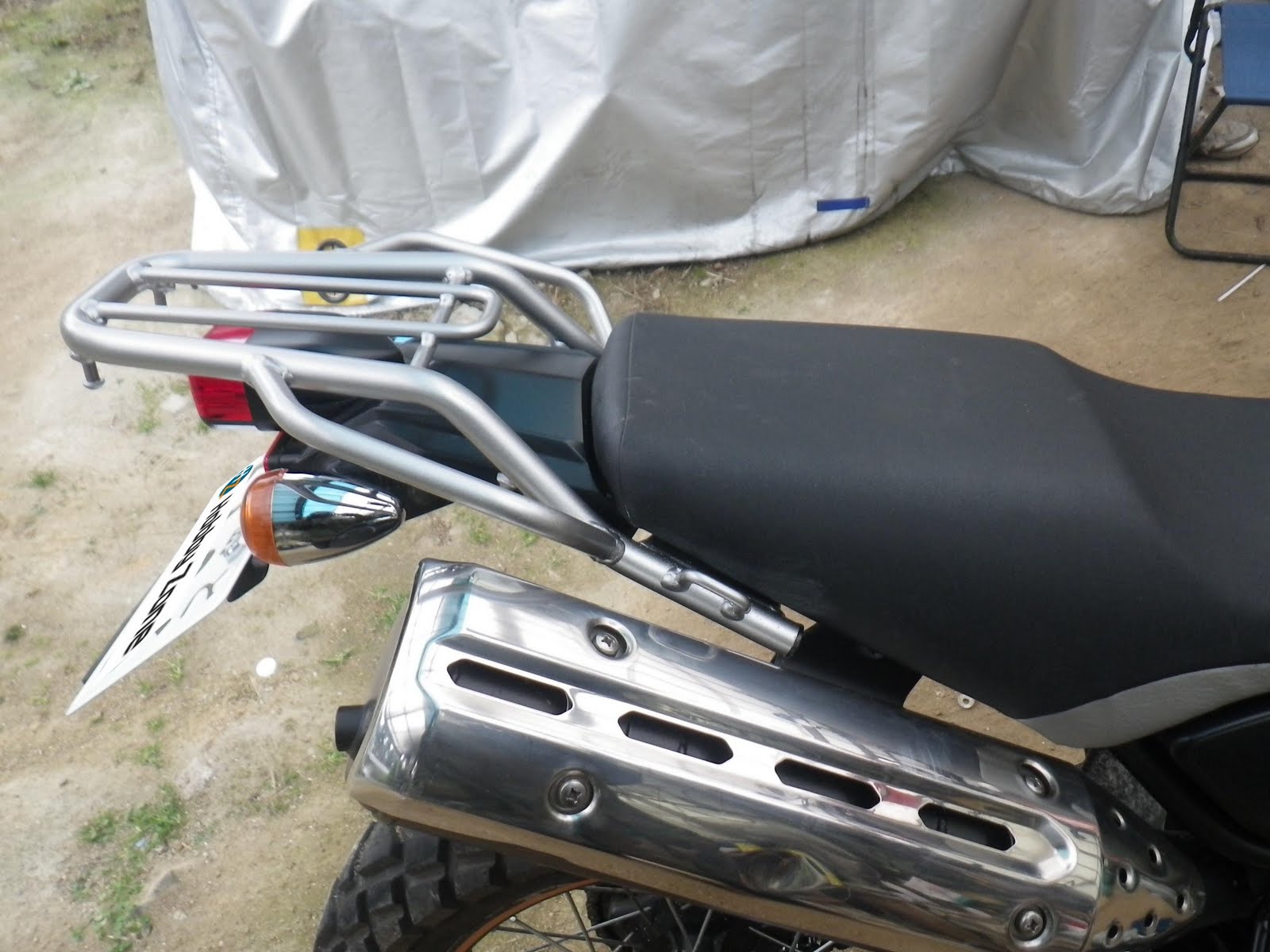 それからひもをかけるフック、左右で非対称です、荷物を積んでみようと思って気がつきました、右側に四角いリングがありますが左側はひっかける棒?おそらく右側にはマフラーがくるからだと思います。
