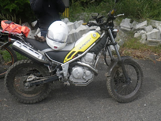 駐車場にて小休止、しんがりを務めてくださったjogjogさんのBMW、ブログでよく見るバイクだ!オイラが遅すぎてスイマセンでした・・・